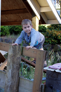 Our bushes are a breeding ground in the summer for lady bugs. The kids had fun looking and holding them.