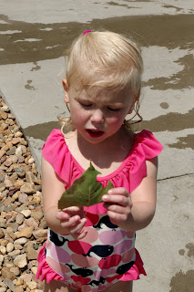 Every time we go to the pool she has to collect all of the aspen leaves.
